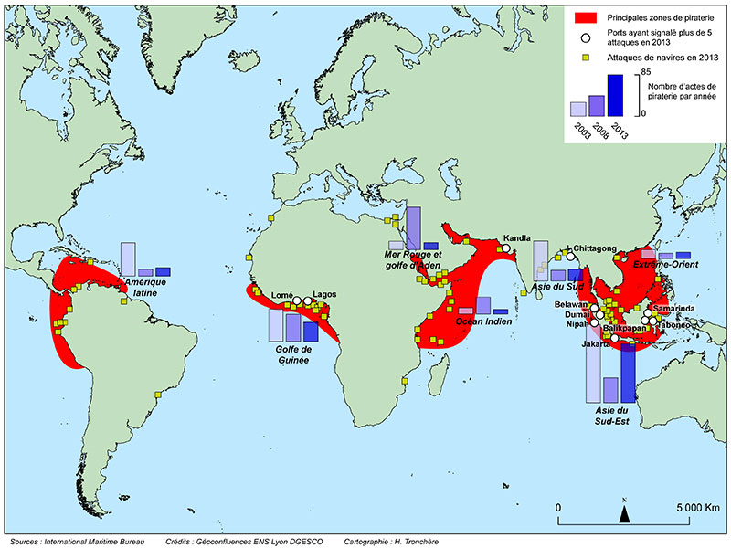 Principales routes maritimes sont les principales cibles de la piraterie, au niveau des détroits et des caps mais plus sûrement à proximité des terres et des routes les plus fréquentées.
